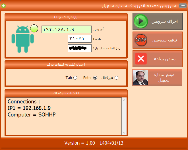 در حالت سرویسدهنده داخلی ستاره سهیل باید به فرم مربوطه در برنامه مراجعه کرده و سرویسدهنده را اجرا نمایید